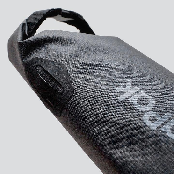 - Roll-top opens for fast filling and buckles closed for carrying and hanging