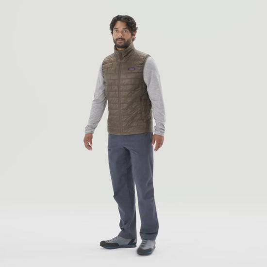 We built the Nano Puff® Vest for climbers who needed a weather-resistant, lightweight and packable synthetic insulation layer that could stay warm even when wet and withstand seasons of use. Ever since, those same features have made it the uncontested favorite midlayer for just about any outdoor pursuit. With fit refinements for improved mobility, 60-g PrimaLoft® Gold Insulation Eco 100% postconsumer recycled polyester with P.U.R.E.™ (Produced Using Reduced Emissions) technology, and a 100% recycled polyester shell and lining. Made in a Fair Trade Certified™ factory.