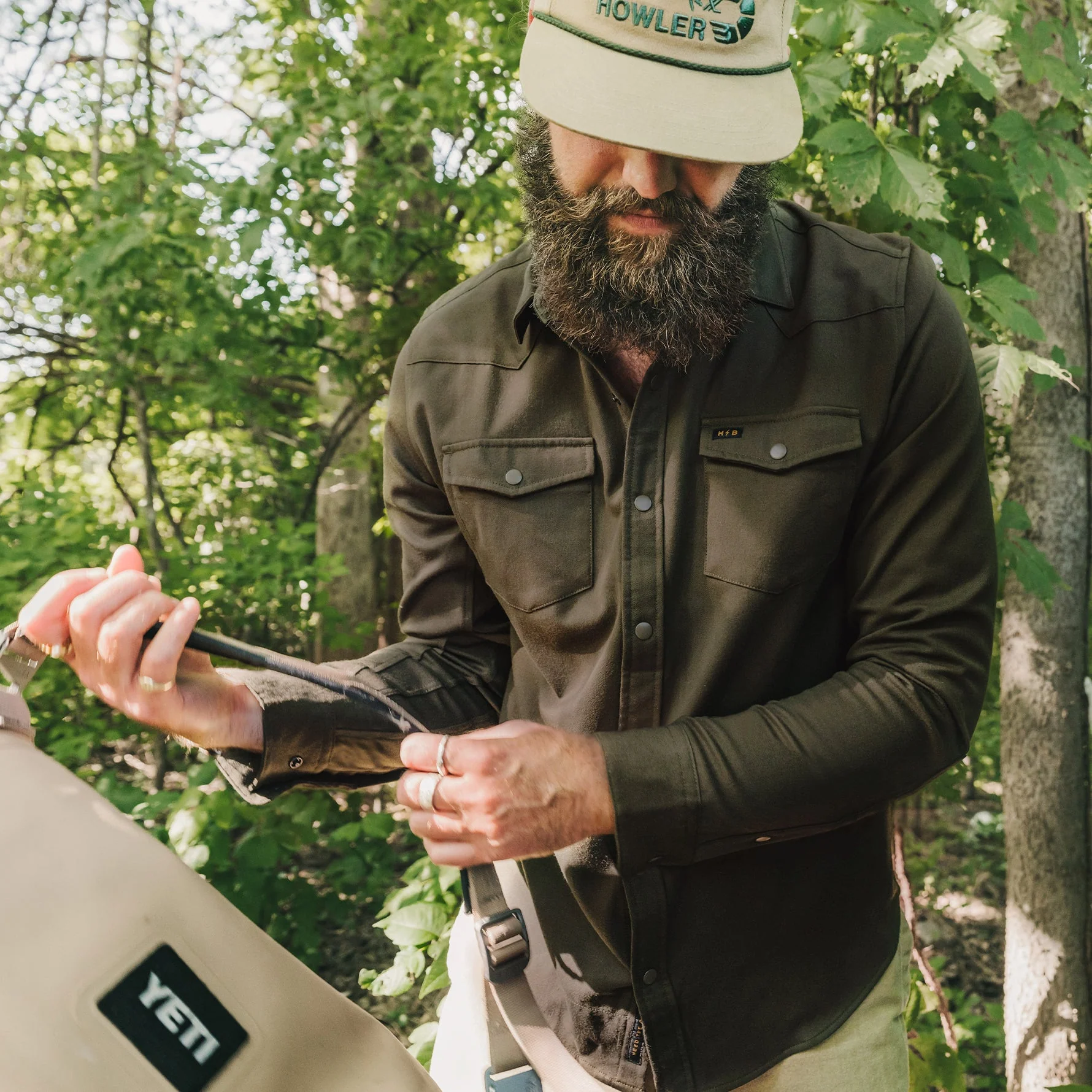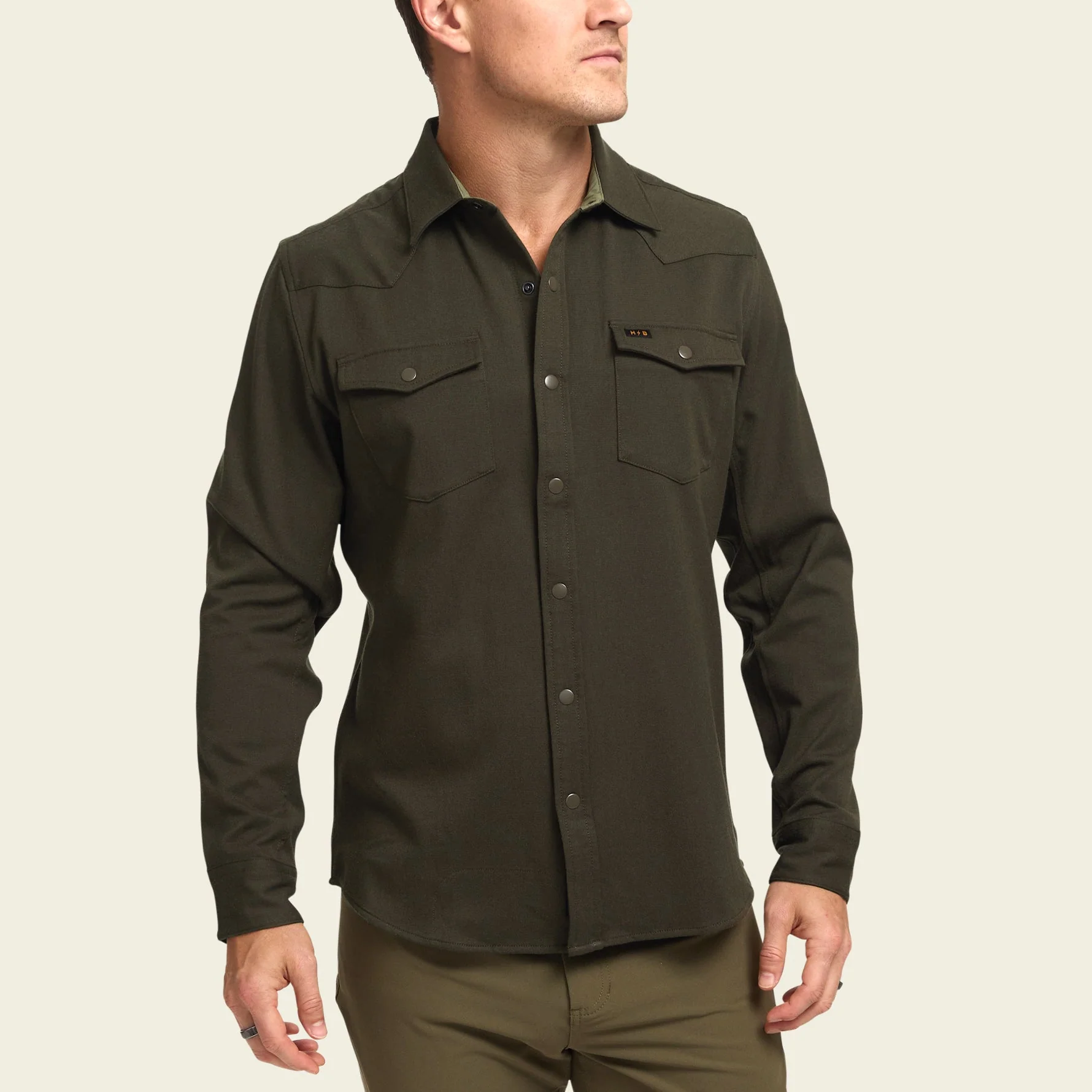The Stockman Stretch Snapshirt is a western inspired snapshirt constructed of a stretchy poly-rayon-spandex fabric that will help you rope and wrestle anything in sight. Throw in the super cool colored snap buttons for a bit of Howler vibe and our original sunglass cleaning microfiber at the hem and you're ready for every ride.