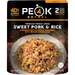When it’s time to settle in by the fire, savor it sweeter with Peak Refuel’s Sweet Pork and Rice. With a kick of chili peppers, dive into this medley of tender pulled pork, white rice, black beans, veggies, and a dash of cilantro and spices. Oh, and did we mention our pork is made of, well, pork? We steer clear of fillers or artificial additives to give you the elevated meal you deserve after a long day outdoors. Recharge with 40 grams of protein, 50% of your daily iron, and 20% of your daily potassium and can get back up the next day to start out like it’s day 1.