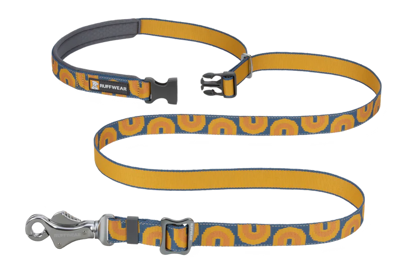 It includes Ruffwear's signature leash features like a padded handle, an accessory loop for pick-up bags or small attachable leash accessories, and strong webbing that holds its color so it can be your favorite leash for years to come. Integrated reflectivity helps boost visibility for dogs and humans getting out in low-light conditions.