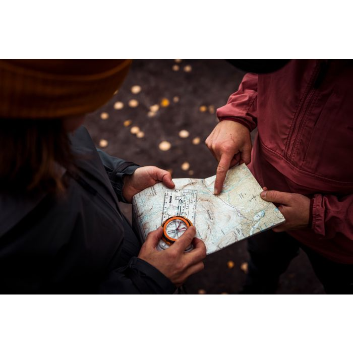 An advanced mirror sighting compass for experienced users and professionals with high demands on accuracy, precision and durability. If the terrain demands a mirror sighting compass, the Ranger 2.0 is your optimal companion. The compass comes with a slope card and a distance lanyard. The slope card is great both for detecting avalanche risk and for determining how challenging your journey will be. By knowing the slope you can also judge any extra distance that you need to go due to the slope. The distance lanyard has four scales on it; 1:24k, 1:25k, 1:50k and 1:62.5, which facilitates in measuring the distance of your hike. Since its soft and bendable, it’s easy to place it directly on to your route on the map. A mirror sighting compass should be your choice when you must determine direction over long distances. With the mirror tilted to a 45-degree angle, you can check your direction by looking at the bezel in the mirror while sighting in the correct direction of travel. Because you needn’t lift your eyes from the compass in order to look into the terrain, the direction determined with the Silva 1-2- 3 System® becomes more accurate. Ranger 2.0 features DryFlex™ grip for easy handling, a clinometer for measuring slope angle and comes with a built-in adjuster for magnetic declination, magnifying lens and rubber friction feet for precision map work. It also features map-measuring in mm & inches with scales of 1:25k, 1:50k, 1:24k USGS scale, and GPS scales. The scales and markings are in a clear contemporary font combined with lots of transparency in the baseplate making navigation easier - when activated in light, the luminous markings enable night time navigation. The red/black and North/South lines in the capsule bottom ensures easy and safe settling. The needle is made from finest Swedish steel with high quality magnetic features.