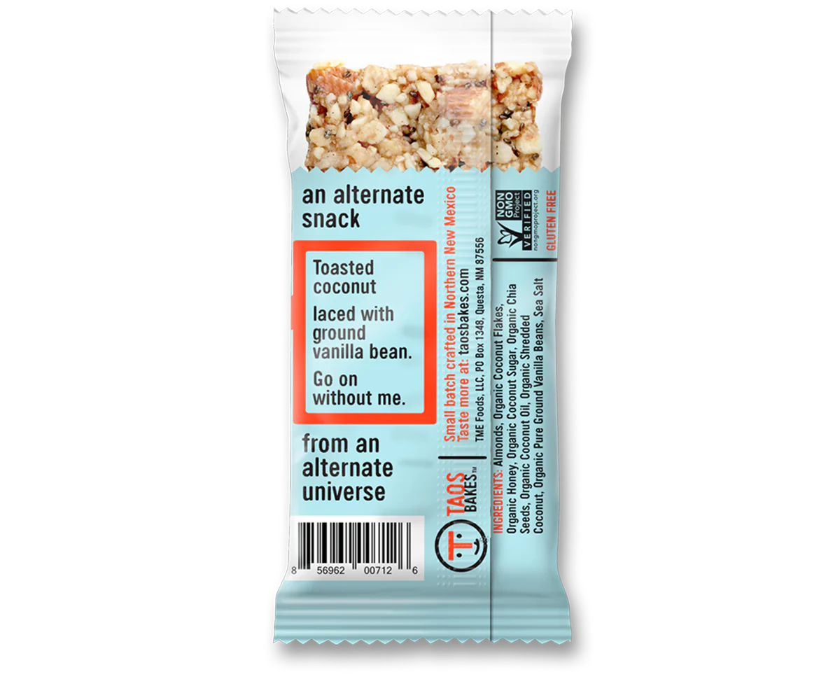 Crunchy almonds and flaky toasted coconut, hints of vanilla, and a sprinkling of sea salt. We refuse to use processed coconut, and instead opt for simple, dehydrated flakes that punch up the flavor, and deliver healthy oils. This crowd favorite is a knockout that blends crunchy and chewy.