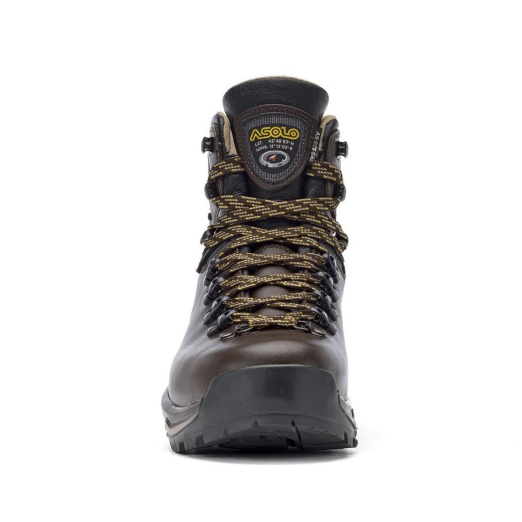 One-piece, full grain, water resistant leather upper that offers comfort and protection with Gore-Tex Performance Comfort Footwear lining which guarantees waterproofness and breathability. Co-injected two-density polyurethane midsole gives comfort, stability, and cushioning. High-tech Asolo/Vibram Tripe Power Structure outsole stands out for its three shock absorbers at the points of greatest impact with the ground. The sole has a self-cleaning design and offers grip and precision in all types of terrains. The Micro Pully System lacing system ensures a fast, precise and customizable lace up.