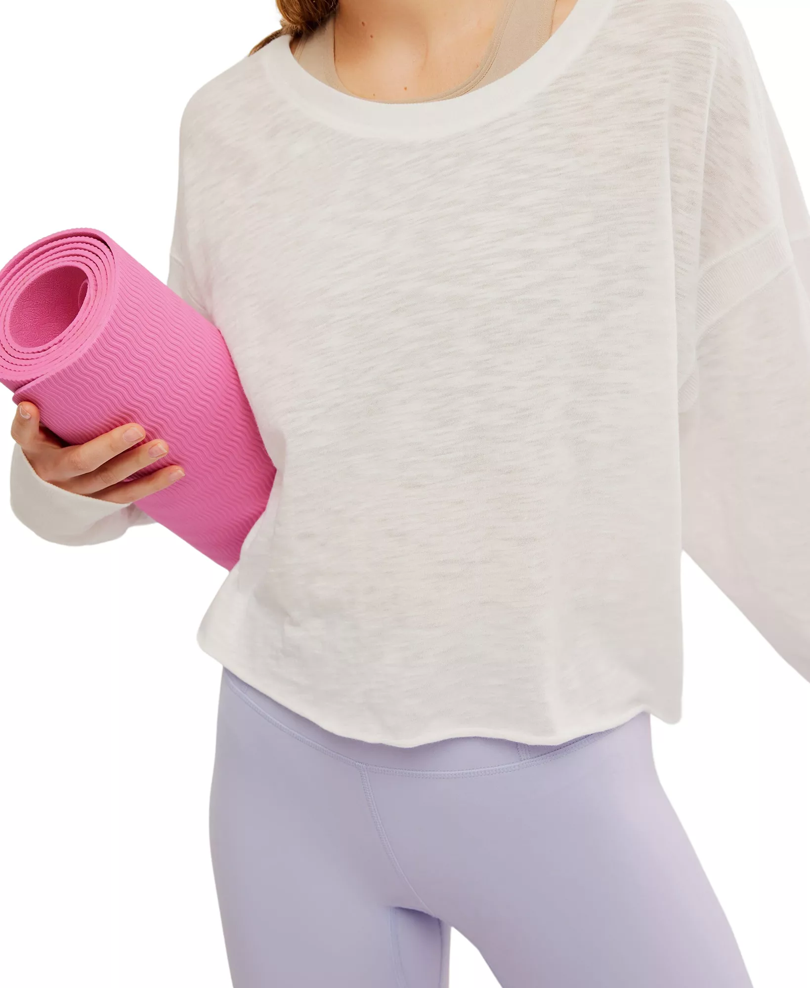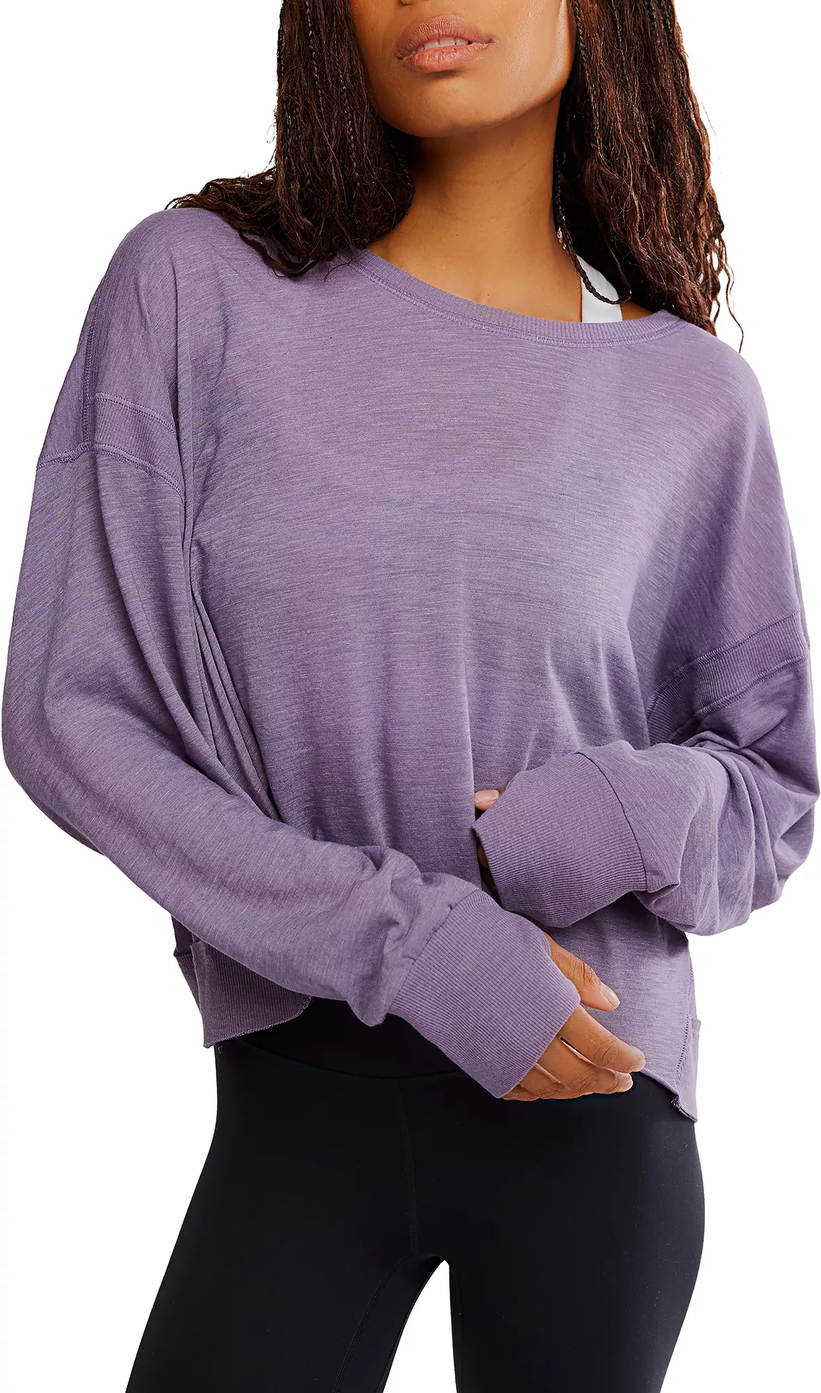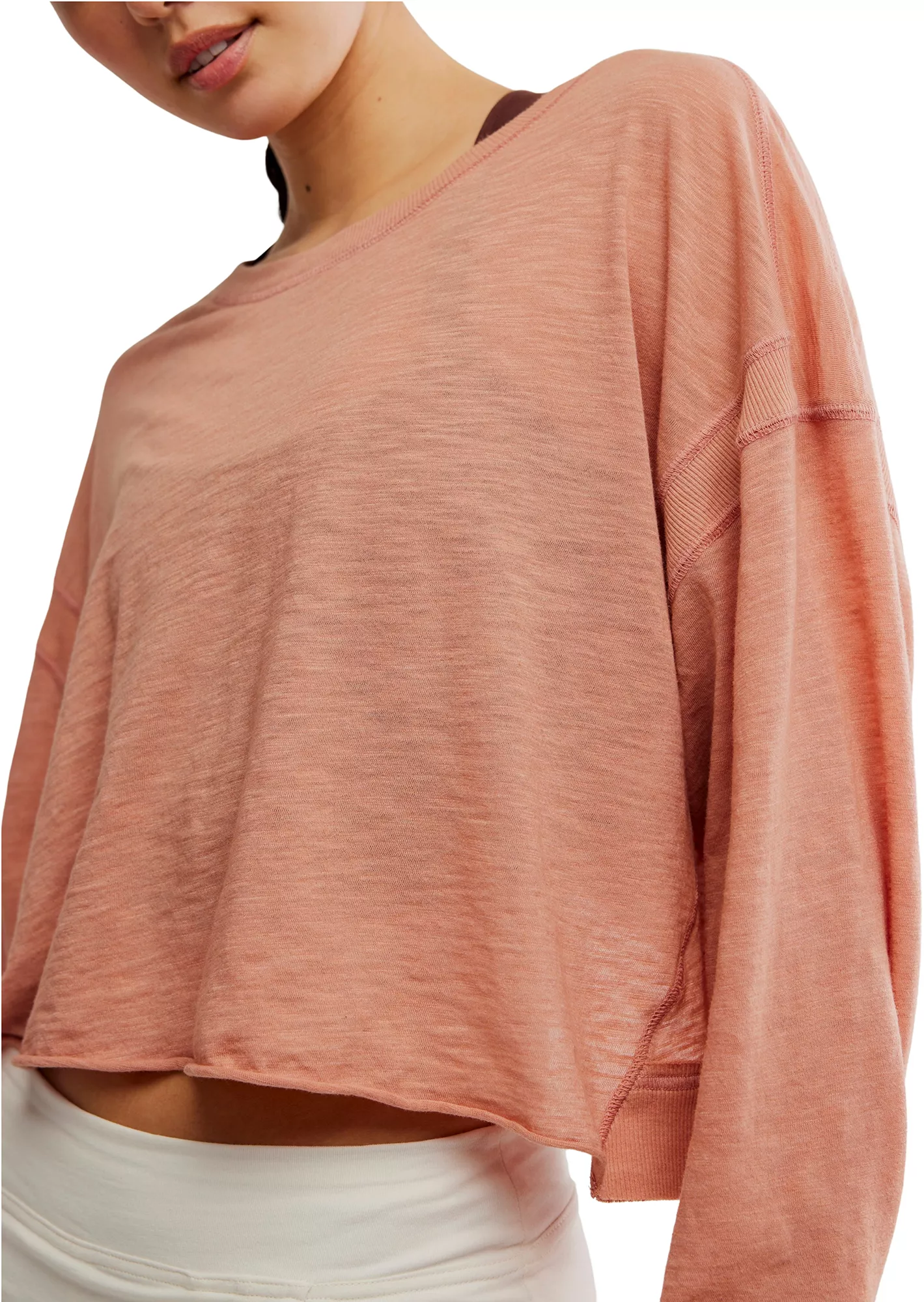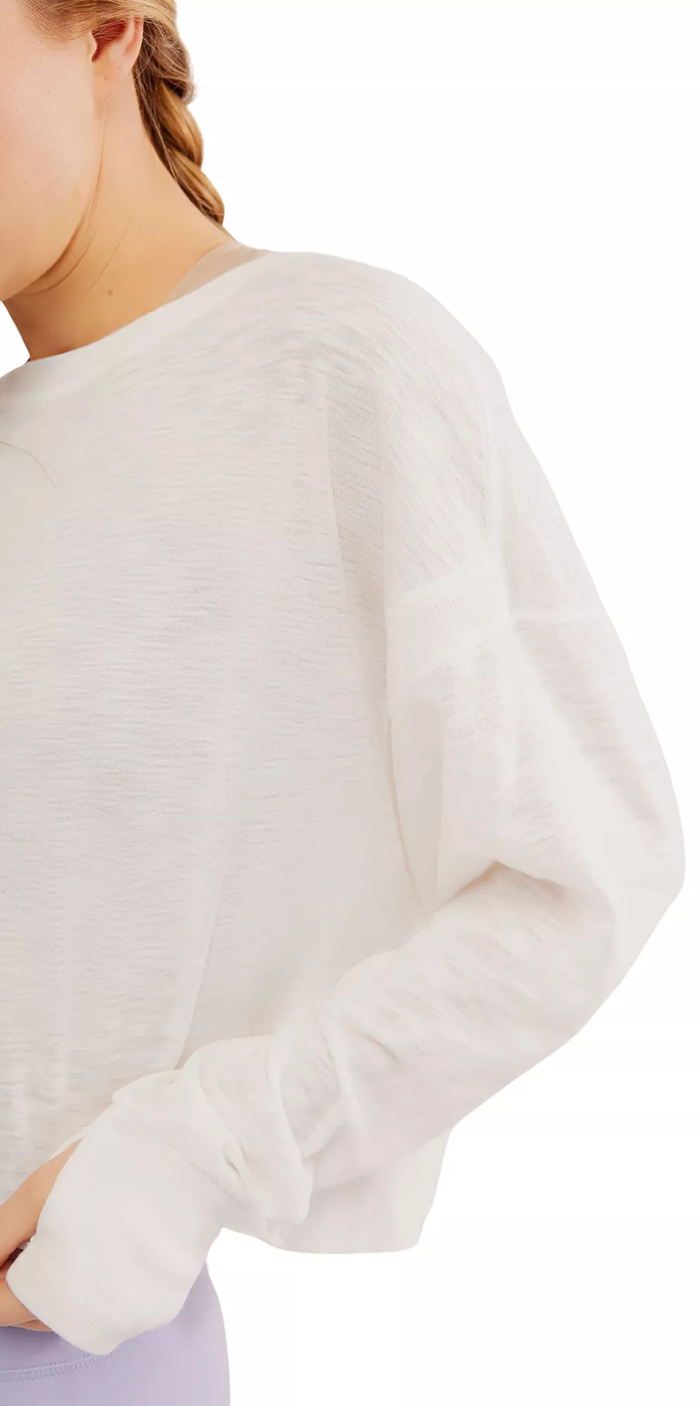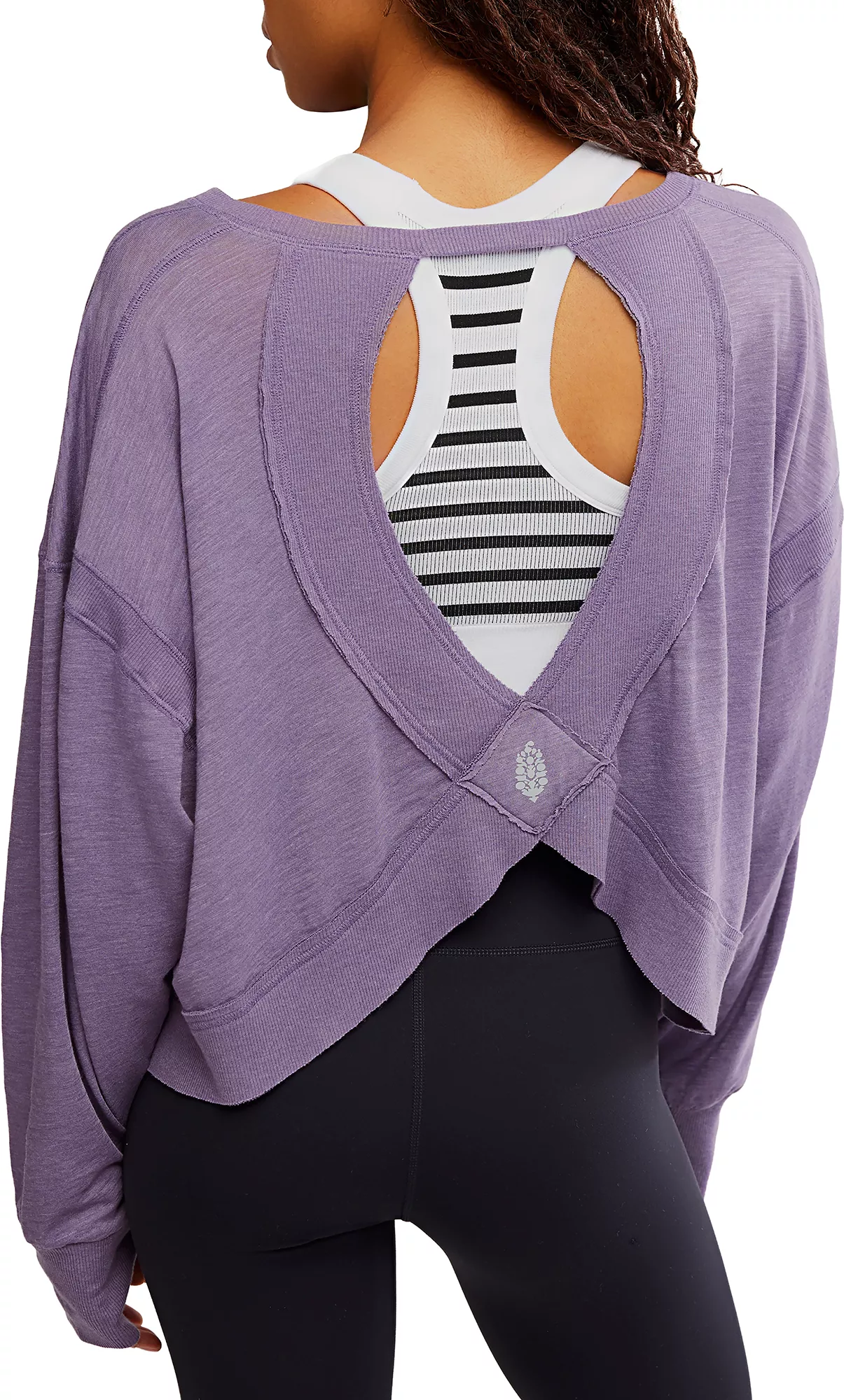 Perfect for going to or from a workout, this layer features a soft fabrication, slouchy crop and flattering back opening.